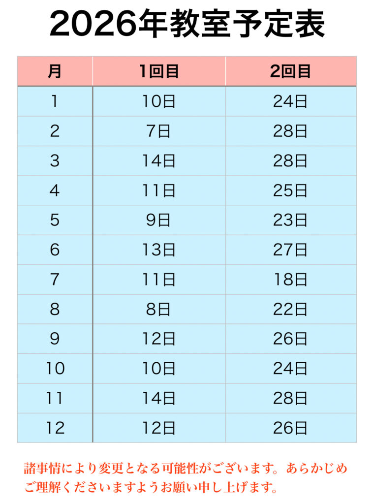 教室を日曜日ご希望の方がいらっしゃいましたらお問い合わせください。