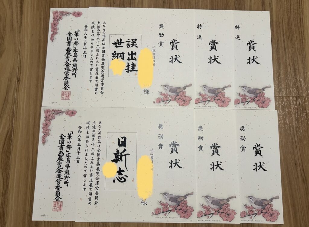 平塚書道教室 ふれあい書道展結果 投稿日 2026年4月27日 著者 mc8wa6j4 カテゴリー お知らせ 書道展お疲れ様でした。この度は、特選2名・奨励賞4名と、素晴らしい結果となりました☺️受賞された皆さま、本当におめでとうございます。今回出品された方の多くが、書道を始めてまだ1年前後にも関わらず、どの作品もしっかりと仕上げられておりました。日々の練習の成果と努力を強く感じます!今後のさらなる成長もとても楽しみです✨